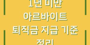 아르바이트를 하시는 분들께서는 퇴직금에 대한 궁금증이 많으실 것입니다. 특히 1년 미만 근무한 경우에 대한 기준은 더욱 복잡할 수 있습니다. 본 글에서는 1년 미만의 아르바이트 근로자에 대한 퇴직금 지급 기준을 정리하여, …