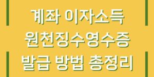 계좌 이자소득 원천징수영수증은 소득세 신고를 위해 매우 중요한 서류입니다. 금융기관에서 발생한 이자소득에 대한 세금이 원천징수되고, 이를 증명하기 위해 발급받는 영수증입니다. 이번 글에서는 하나은행, 우리은행, 기업은행, 국민은행, 신한은행, 농협 등 주요 …
