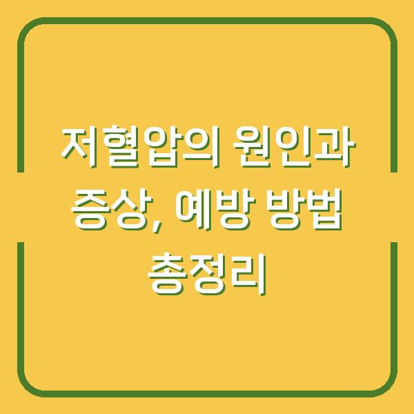 이번 글에서는 저혈압의 원인, 증상, 그리고 예방 방법에 대해 자세히 알아보겠습니다.