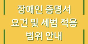 장애인 증명서는 장애인을 법적으로 인정받기 위해 필요한 중요한 문서입니다. 이 증명서는 장애인의 권리를 보호하고, 다양한 혜택을 받을 수 있는 근거가 됩니다. 이번 글에서는 장애인 증명서의 요건과 세법 적용 범위에 대해 …