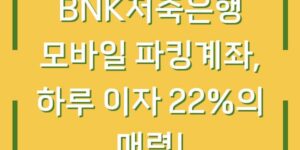 최근 금융 시장에서 고금리 장기화가 지속되면서 많은 투자자들이 자산을 안전하게 관리할 수 있는 방법을 모색하고 있습니다. 그 중 하나로 떠오르는 것이 BNK저축은행의 모바일 파킹계좌입니다. 이 계좌는 하루 이자 22%라는 매력적인 …