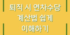 퇴직 시 연차수당은 많은 근로자들이 궁금해하는 사항 중 하나입니다. 연차수당은 근로자가 사용하지 못한 연차휴가에 대한 보상으로 지급되며, 이는 근로기준법에 근거하여 규정되어 있습니다. 이 글에서는 연차수당이 무엇인지, 그리고 어떻게 계산하는지에 대해 …