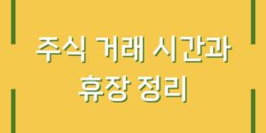 주식 거래는 투자자들에게 중요한 기회를 제공하며, 이와 관련된 시간 및 휴장에 대한 이해는 성공적인 투자 전략에 필수적입니다. 이번 글에서는 주식 거래의 기본 개념과 함께 거래 시간 및 주요 휴장일에 대해 …