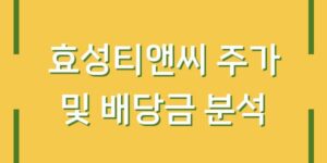 효성티앤씨는 국내 섬유 및 화학 산업에서 중요한 역할을 하고 있는 기업입니다. 본 글에서는 효성티앤씨의 주가 동향과 배당금 정책을 심층적으로 분석하여 투자자들에게 유용한 정보를 제공하고자 합니다. 효성티앤씨 회사 개요 효성티앤씨는 효성그룹의 …