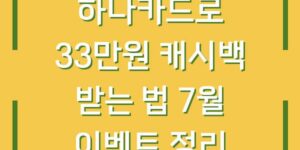 최근 신용카드 혜택이 줄어들고 있는 가운데, 하나카드에서는 여전히 매력적인 캐시백 혜택을 제공하고 있습니다. 이번 7월에는 신규 발급을 통해 최대 33만원의 캐시백을 받을 수 있는 기회가 마련되어 있으니, 하나카드 발급을 고려하시는 …