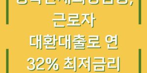 최근 금융 시장에서 대환대출이 주목받고 있는 가운데, 행복한새희망금융이 근로자들을 위해 제공하는 대환대출 서비스가 큰 관심을 받고 있습니다. 특히, 이 서비스는 연 3.2%의 최저금리를 자랑하며, 근로자들이 더 나은 조건으로 대출을 이용할 …