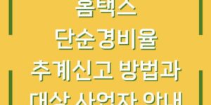 홈택스에서 제공하는 단순경비율 추계신고는 많은 사업자에게 중요한 세무 업무 중 하나입니다. 본 글에서는 단순경비율 추계신고의 개념, 방법, 그리고 해당되는 사업자에 대해 상세히 안내드리겠습니다. 이를 통해 독자 여러분이 보다 쉽게 신고를 …