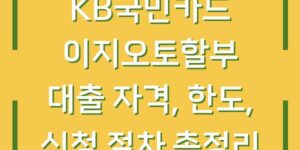 KB국민카드 이지오토할부 대출은 차량 구매를 원하는 소비자들에게 유리한 금융 상품입니다. 본 글에서는 이 대출 상품의 자격 요건, 대출 한도, 신청 절차 등을 자세히 살펴보겠습니다. 이지오토할부 대출 자격 요건 KB국민카드 이지오토할부 …
