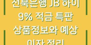 전북은행의 JB 하이 9% 적금 특판은 현재 금융 시장에서 주목받고 있는 상품 중 하나입니다. 이 적금 상품은 특히 높은 금리와 안전성을 동시에 제공하여 많은 고객들의 관심을 끌고 있습니다. 이번 포스트에서는 …
