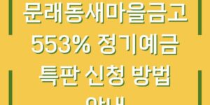 문래동새마을금고의 5.53% 정기예금 특판은 현재 금융 시장에서 많은 관심을 받고 있는 상품입니다. 이 정기예금 상품은 안정적인 자산 관리를 원하는 고객들에게 최적의 선택지로 자리매김하고 있습니다. 본 글에서는 문래동새마을금고의 정기예금 특판의 상세한 …