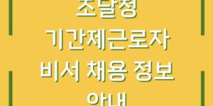 조달청에서 기간제근로자로 비서를 채용하는 공고가 발표되었습니다. 이번 채용은 공개경쟁으로 진행되며, 청년층을 포함한 다양한 구직자들에게 좋은 기회가 될 것입니다. 본 글에서는 이번 채용의 세부 사항과 준비 방법을 자세히 설명해 드리겠습니다. 채용 …