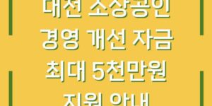 대전광역시는 경영 어려움을 겪고 있는 소상공인들을 위해 ‘소상공인 경영 개선 자금’을 지원하고 있습니다. 이 자금은 최대 5천만원까지 대출이 가능하며, 현재 예산 소진 시까지 신청을 받고 있습니다. 본 글에서는 대전 소상공인 …