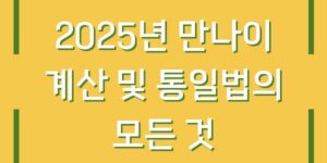 2025년부터 한국에서 만나이를 공식적으로 사용하기로 결정하면서, 많은 분들이 만나이 계산법과 통일법에 대해 궁금해하고 있습니다. 이번 글에서는 만나이 계산법, 만나이 통일법의 배경과 의미, 그리고 예외 사항들에 대해 상세히 알아보도록 하겠습니다. 만나이란 …