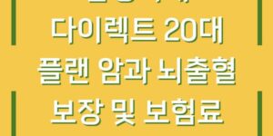 삼성화재의 다이렉트 20대 플랜은 만 19세에서 30세까지의 젊은 세대를 위한 맞춤형 보험 상품입니다. 이 플랜은 특히 중대 질병에 대한 보장을 강화하여, 암, 뇌출혈, 심장질환 등과 같은 치료비가 많이 발생하는 질병에 …