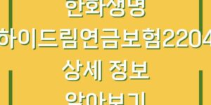 한화생명 하이드림연금보험2204 소개 한화생명 하이드림연금보험2204는 은퇴 후 안정적인 소득을 보장하기 위해 설계된 연금 상품입니다. 이 상품은 다양한 연금 수령 방식과 높은 수익률을 제공하여 고객의 노후 준비를 돕습니다. 현대 사회에서 은퇴 …