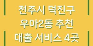 전주 덕진구 우아2동은 다양한 금융 서비스가 제공되는 지역입니다. 특히, 대출 서비스는 개인의 재정 상황에 따라 큰 도움이 될 수 있습니다. 오늘은 전주시 덕진구 우아2동에서 추천할 만한 대출 서비스 4곳을 소개하겠습니다. …