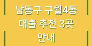 대출을 고려하고 계신 분들에게 적합한 정보를 제공하는 것이 필요합니다. 특히, 대출 상품은 다양하고 각기 다른 조건이 있기 때문에, 신중한 선택이 필요합니다. 이번 포스트에서는 인천 남동구 구월4동에서 추천할 만한 대출 업체 …