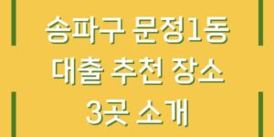 송파구 문정1동은 서울에서 경제적으로 중요한 지역 중 하나로, 많은 사람들이 이곳에서 대출 관련 서비스를 찾고 있습니다. 이 글에서는 문정1동에서 이용할 수 있는 추천 대출 장소 3곳을 자세히 소개하겠습니다. 이들 장소는 …