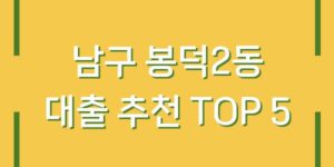 대출을 고려하는 많은 분들이 계실 것입니다. 특히 대구 남구 봉덕2동 지역에 거주하고 계신 분들은 필요한 자금을 마련하기 위해 여러 금융기관의 대출 상품을 검토하고 계실 텐데요. 대출을 받을 때는 금리, 상환 …