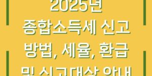 2025년 종합소득세 신고는 개인사업자와 직장인 모두에게 중요한 과정입니다. 매년 이 시기가 다가오면서 많은 납세자들이 신고 방법, 세율, 환급 절차 및 신고 대상에 대해 궁금해하는 것은 지극히 자연스러운 일입니다. 이번 글에서는 …