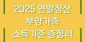 연말정산은 매년 많은 근로자들이 기다리는 중요한 과정입니다. 특히 부양가족과 관련된 인적공제는 세금 환급에 큰 영향을 미치기 때문에 정확한 이해가 필요합니다. 이번 글에서는 2025 연말정산 시 부양가족의 소득기준에 대해 자세히 설명드리겠습니다. …