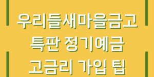 정기예금은 금융 상품 중에서도 안정성과 예측 가능성 덕분에 많은 사람들에게 인기가 있는 투자 방식입니다. 특히, 고금리 정기예금은 자산을 안정적으로 불리고자 하는 이들에게 더욱 매력적입니다. 최근 우리들새마을금고에서 특별히 제공하는 특판 정기예금이 …
