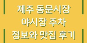 제주도 여행을 계획하시는 분들께 추천드리고 싶은 곳이 바로 제주 동문시장입니다. 특히 저녁 시간에 열리는 야시장은 다양한 먹거리와 특산물로 가득하여 많은 관광객들이 찾는 명소입니다. 이번 글에서는 제주 동문시장의 주차 정보와 함께 …