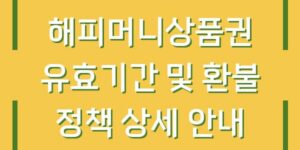 해피머니상품권은 현대 소비자에게 매우 유용한 선불형 상품권입니다. 다양한 가맹점에서 사용이 가능하며, 선물이나 경품으로도 많이 활용되고 있습니다. 그러나 이러한 상품권에도 유효기간과 환불에 대한 정책이 있기 때문에, 사용하기 전 반드시 확인해야 할 …