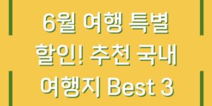 여름이 다가오면서 많은 분들이 여행 계획을 세우고 계실 텐데요. 특히 6월은 여행을 떠나기 좋은 시기이기도 하죠. 이번에는 국내 여행지 중에서도 특별 할인 혜택을 누릴 수 있는 추천 여행지를 소개해드리겠습니다. 각 …