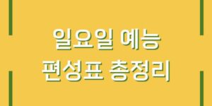일요일은 많은 이들에게 휴식의 날이자 가족과 함께 즐기는 시간을 제공하는 특별한 날입니다. 이 날에는 다양한 예능 프로그램이 방송되어 시청자들에게 즐거움을 선사합니다. 이번 블로그 글에서는 일요일에 방영되는 예능 프로그램의 편성표를 정리하고, …