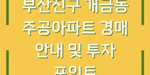 부산진구 개금동에 위치한 주공아파트는 최근 경매에 출품되었으며, 이는 투자자들에게 흥미로운 기회를 제공합니다. 본 글에서는 해당 아파트의 경매 정보와 함께 투자 포인트에 대해 자세히 알아보겠습니다. 경매 개요 부산진구 개금동 주공아파트는 지역 …