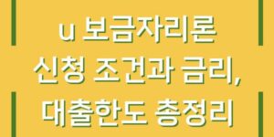 주택 구매나 전세 자금 마련을 위해 대출을 고려하는 분들이 많습니다. 그중에서도 ‘u 보금자리론’은 고정금리 대출 상품으로 많은 관심을 받고 있습니다. 이번 글에서는 u 보금자리론의 신청 조건, 금리, 대출 한도 등에 …