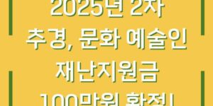 2025년 2차 추가경정예산안이 통과되면서, 문화 예술인들에게 100만원의 재난지원금이 지급될 예정입니다. 이는 문화체육관광부와 한국예술인복지재단을 통해 진행되는 사업으로, 코로나19로 인해 어려움을 겪고 있는 문화 예술계에 큰 도움이 될 것으로 예상됩니다. 이번 글에서는 …