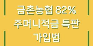 최근 금융 시장에서 높은 금리를 제공하는 적금 상품들이 주목받고 있습니다. 특히, 금촌농협의 82% 주머니적금 특판은 많은 소비자들에게 큰 관심을 받고 있습니다. 이 글에서는 금촌농협의 주머니적금 특판에 대한 자세한 정보와 가입 …