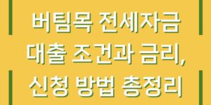 버팀목 전세자금 대출은 주거 안정을 위한 중요한 금융 지원 프로그램으로, 특히 청년과 서민을 대상으로 합니다. 이 대출은 전세자금이 부족한 가구에게 필요한 자금을 지원하여, 안정적인 주거 환경을 제공하고자 하는 목적을 가지고 …