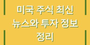 미국 주식 시장은 세계에서 가장 큰 주식 시장으로 알려져 있으며, 그 변화는 글로벌 경제에 큰 영향을 줍니다. 최근의 미국 주식 관련 뉴스와 투자 정보를 정리하여 투자자 여러분께 유익한 정보를 제공하고자 …