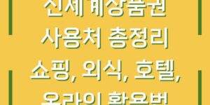 신세계상품권은 다양한 분야에서 활용할 수 있는 유용한 상품권입니다. 쇼핑, 외식, 호텔 예약, 온라인 결제 등 여러 곳에서 사용이 가능하여 많은 사람들에게 사랑받고 있습니다. 이번 블로그 글에서는 신세계상품권의 사용처와 각각의 활용 …
