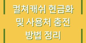 컬쳐캐쉬는 다양한 방법으로 현금화가 가능하며, 여러 상점에서 사용할 수 있는 유용한 결제 수단입니다. 본 블로그 글에서는 컬쳐캐쉬의 현금화 방법, 사용처, 충전 방법 등을 자세히 알아보도록 하겠습니다. 컬쳐캐쉬 현금화 방법 컬쳐캐쉬를 …