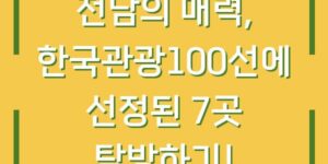 전라남도는 한국의 아름다운 자연경관과 풍부한 문화유산을 고루 갖춘 지역으로, 최근에는 한국관광100선에 선정된 7곳이 주목받고 있습니다. 이번 글에서는 이 7곳의 매력을 자세히 살펴보며, 여행 계획에 도움이 될 수 있는 정보를 제공하겠습니다. …