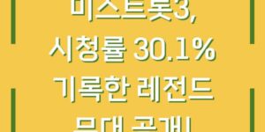 최근 ‘미스트롯3’는 방송 역사에 길이 남을 만한 시청률을 기록하며 많은 화제를 모았습니다. TV조선의 인기 트로트 경연 프로그램인 ‘미스트롯3’는 지난 22일 방송된 10회에서 30.1%의 시청률을 기록하며, 시청자들에게 놀라운 감동과 즐거움을 선사했습니다. …