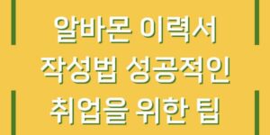 알바몬은 많은 아르바이트생들이 활용하는 플랫폼으로, 이력서 작성법은 성공적인 취업을 위해 매우 중요한 요소입니다. 올바른 이력서 작성은 원하는 아르바이트 자리를 얻는 데 큰 영향을 미친다고 할 수 있습니다. 이번 글에서는 알바몬 …