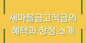 새마을금고는 지역사회의 금융기관으로서 많은 고객들에게 다양한 예금 상품을 제공하고 있습니다. 그 중에서도 새마을금고적금은 안정성과 높은 금리 혜택으로 많은 사랑을 받고 있습니다. 이번 글에서는 새마을금고적금의 주요 특징과 혜택, 그리고 가입 방법에 …
