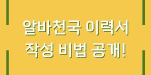 알바천국은 구직자들에게 최적의 이력서 작성 서비스를 제공하는 플랫폼입니다. 특히 아르바이트를 찾는 젊은이들에게 많은 사랑을 받고 있으며, 이력서 작성에 있어 중요한 팁과 노하우를 제공합니다. 이번 글에서는 알바천국을 활용한 이력서 작성의 비법을 …