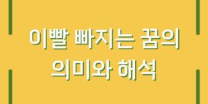 이빨 빠지는 꿈은 많은 사람들에게 불안감을 주는 꿈 중 하나입니다. 이 꿈은 심리적으로 강한 충격이나 스트레스를 경험하는 시기를 상징하며, 여러 가지 해석이 가능합니다. 꿈의 내용에 따라 이빨이 빠지는 이유와 그로 …