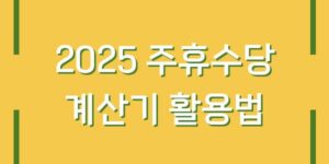 안녕하세요. 이번 글에서는 2025년 주휴수당 계산기 활용법에 대해 자세히 알아보도록 하겠습니다. 주휴수당은 근로자에게 매우 중요한 권리이자, 사업주에게는 법적 의무로 자리 잡고 있습니다. 이를 정확히 알아보고 활용하는 것은 모든 사업장에서 필수적입니다. …