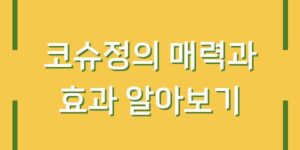 코슈정의 매력과 효과 알아보기