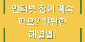 컴퓨터를 사용하다 보면 인터넷 창이 계속 열리는 문제를 겪는 경우가 종종 있습니다. 이러한 현상은 여러 가지 원인으로 발생할 수 있으며, 사용자가 직접 해결할 수 있는 방법도 많습니다. 이 글에서는 인터넷 …