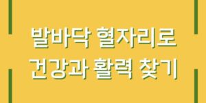 건강은 우리의 삶에서 가장 중요한 요소 중 하나입니다. 현대 사회에서 많은 사람들이 바쁜 일상 속에서 스트레스를 받고, 건강을 소홀히 하게 되는 경우가 많습니다. 이러한 상황에서 발바닥의 혈자리를 자극하는 것은 몸의 …