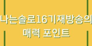 프로그램 개요와 배경 ‘나는솔로’는 2021년 7월부터 방영되기 시작한 연애 리얼리티 프로그램입니다. 이 프로그램은 결혼을 간절히 원하는 솔로 남녀들이 모여 진정한 사랑을 찾기 위해 고군분투하는 모습을 담고 있습니다. 특히, 시즌 16인 …