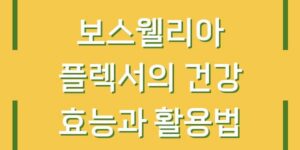 보스웰리아 플렉서란 무엇인가? 보스웰리아 플렉서는 자연에서 유래한 건강 보조 식품으로, 주로 관절 건강을 개선하는 데 도움을 주는 제품으로 알려져 있습니다. 보스웰리아는 감람나무과의 유향나무에서 추출한 수지로, 이 수지는 고대부터 항염증 및 …